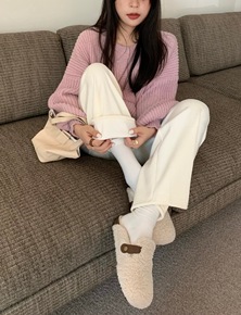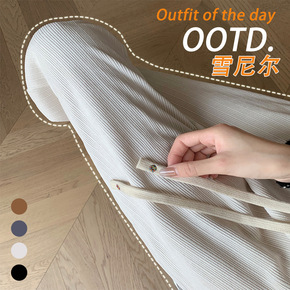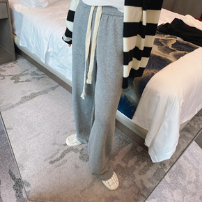 奶系穿搭早秋韩系垂感裤子奶fufu显瘦针织裤阔腿裤...