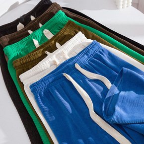 灯芯条绣花抽绳休闲裤时尚新款蛇骨纹阔腿裤垂感秋冬直...