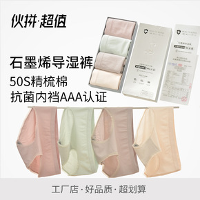石墨稀抗菌内裤 中腰女士纯棉内裤 印花纯棉中腰内...