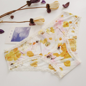百亩花田蕾丝三角裤日系少女中腰无痕全棉裆舒适包臀大...
