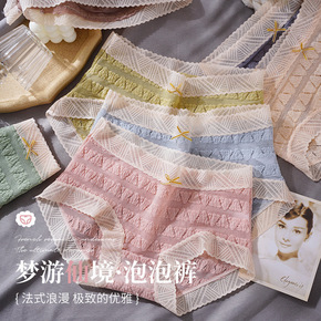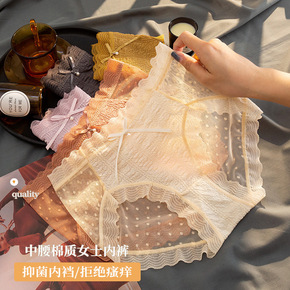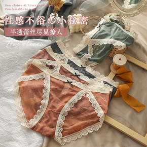 性感蕾丝内裤女士法式新款透明网纱透气纯棉裆日系花边...