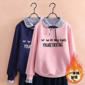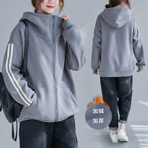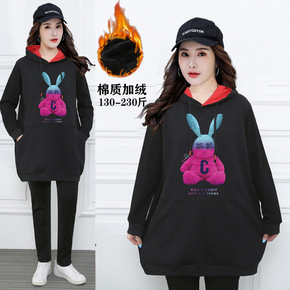 驰爽大码女装加绒加厚中长款秋冬卫衣胖mm200斤宽...