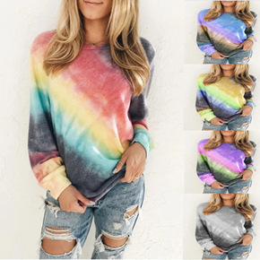 2022春新个性大码卫衣民族风文艺圆领中长款渐变连...