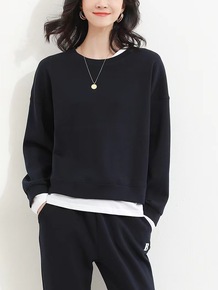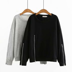 S48大码女装秋装胖妹妹mm显瘦宽松下摆开叉手臂拉...