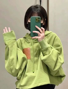 薄卫衣春款连帽设计感小众高级 2022春秋新款绿色...