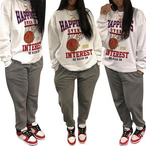 OY109欧美大码女装亚马逊新款图案字母印花连帽时...