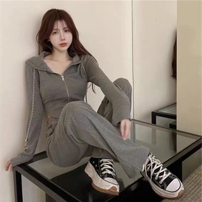 网红减龄甜美连帽拉链开衫不规则卫衣+运动休闲裤两件...