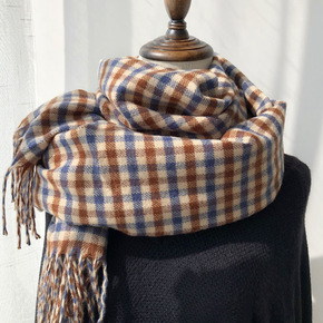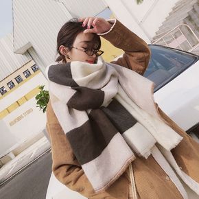 围巾女冬季韩国经典小格子围巾百搭时尚学生加厚保暖围...