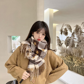 韩国复古格子爱心围巾女冬季仿羊绒日系披肩潮百搭保暖...