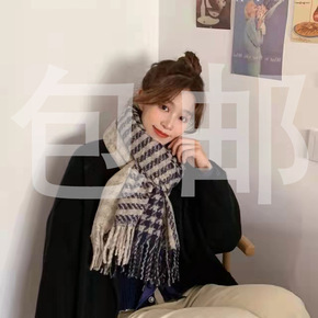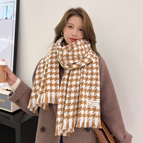 千鸟格子ins围巾女秋冬季2021新款韩版百搭学生...