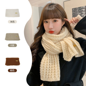 丁走走韩版保暖纯色围巾女秋冬季百搭时尚学生针织围脖...