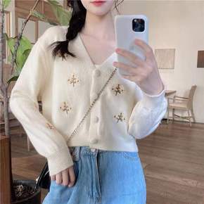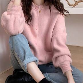 2021秋季新款针织开衫外套毛衣女装韩版纯色日系慵...