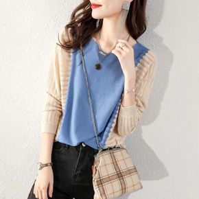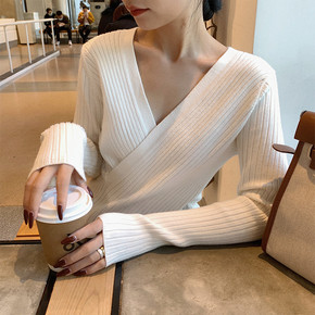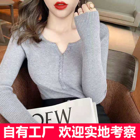 2022年春秋新款V领日系宽松简约清新慵懒风打底针...