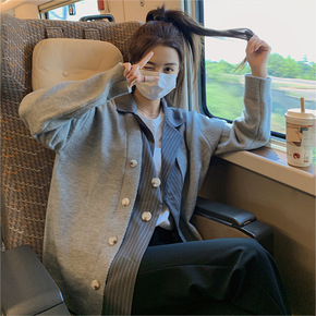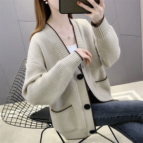 开衫外套女2022年新款宽松慵懒风纯色针织衫休闲上...