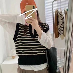韩chic宽松慵懒条纹毛衣女爆新款外穿打底2021...