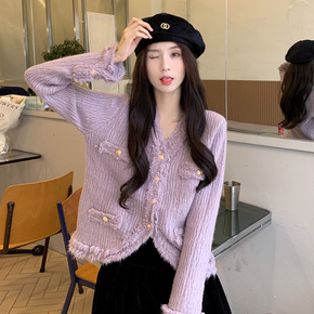 2022春秋款时尚流苏针织开衫毛衣外套甜美学院风韩...