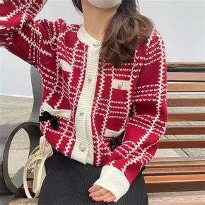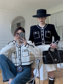 小香风针织开衫女装春季外搭长袖短款上衣2022新款...