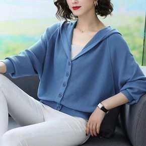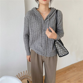 韩系温柔开衫针织外套女装连帽毛衣日系慵懒风新款20...