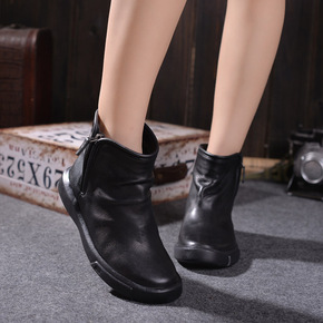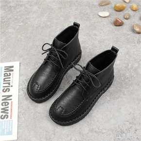 秋冬民族风短靴女平底休闲真皮女靴纯手工软底舒适女鞋...