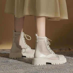 头层牛皮厚底镂空凉靴2022春夏款透气短靴真皮复古...