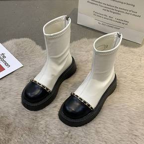 短筒靴女2022年春秋新款网红时尚百搭马丁松糕厚底...