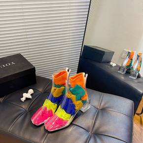 批发透明鞋2022秋季新款PV雨靴水晶跟高跟鞋粗跟...