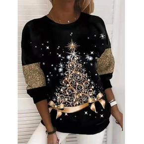 亚马逊独立站春秋季女装新品上衣欧美女士印花长袖圆领...