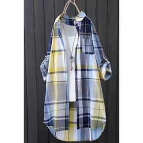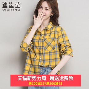 夏季新款韩版文艺格子衬衫女长袖宽松小清新学生薄上衣...