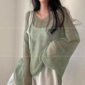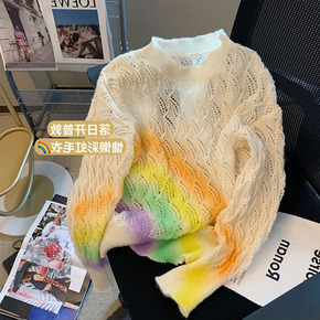 彩色减龄镂空长袖针织衫女秋季新款设计感小众法式慵懒...