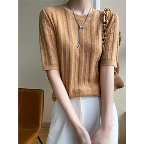 欧货新款羊绒针织衫女洋气减龄薄款宽松百搭毛衣短袖上...