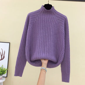 半高领毛衣女套头2021年秋冬新款宽松外穿复古麻花...
