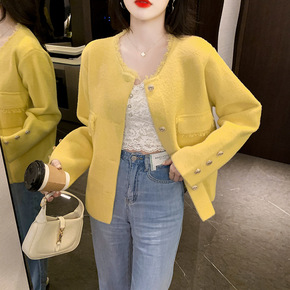 新款流苏小香风针织开衫女短款2022早秋新款复古宽...