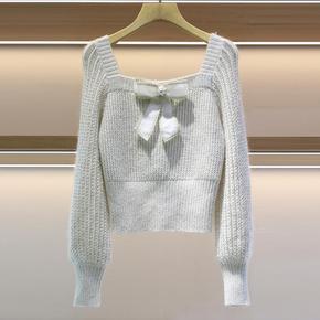 YUMO 芭比girl 短款泡泡袖毛衣女秋冬款软糯...