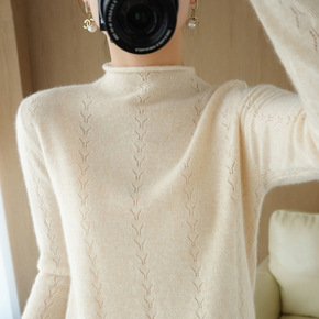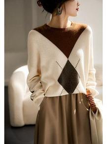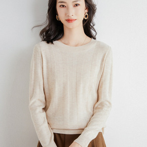 2022年秋冬新款韩版羊毛精纺女式针织衫圆领毛衣套...