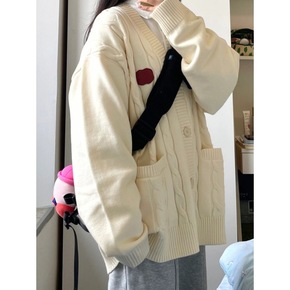 毛衣外套女春秋季2022新款气质宽松慵懒风口袋韩版...