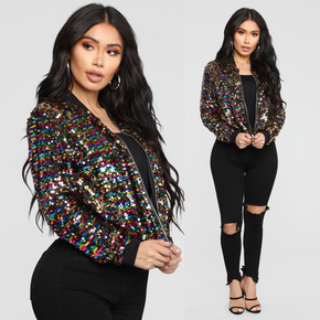 Ebay速卖通热卖 跨境热卖2021时尚拼色亮片短...