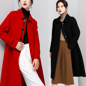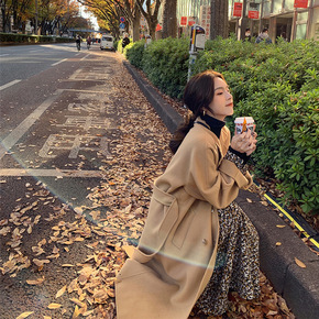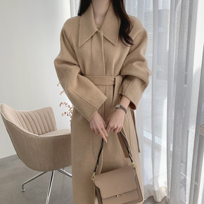 2021秋冬新款双面羊绒大衣女宽松系带大码中长款高...
