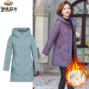 40岁妈妈装中长款绣花羽绒棉服中老年女装时尚洋气加...