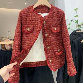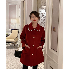 SZESTU红色毛呢外套女装冬季新年中长款高级感娃...