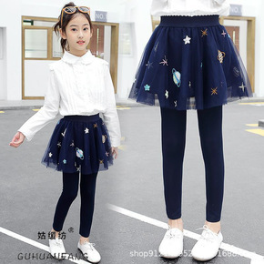女童春秋打底裤假两件裙裤新款洋气儿童薄款大童裤子秋...