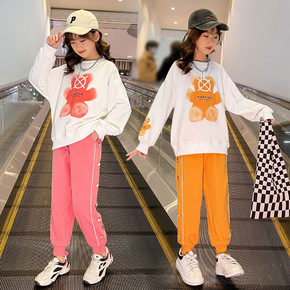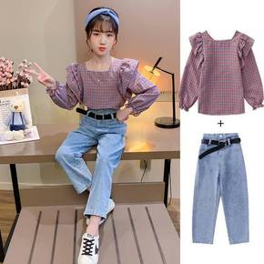 女童套装2022春装洋气棋盘格儿童春夏卫衣韩版大童...