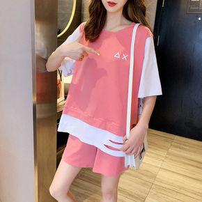 夏装韩版五六年级套装大童衣服小学生岁胖女孩短袖两件...