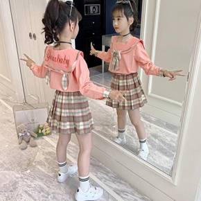 女童JK套装2022夏新款学院风翻领短袖T恤卫衣百...
