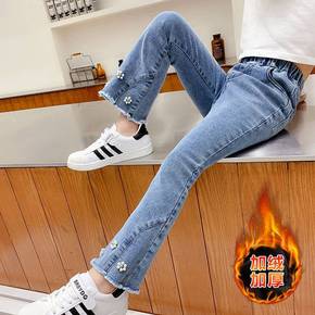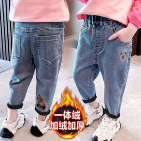 女童裤子女童牛仔裤加绒加厚秋冬装一体绒2021新款...