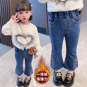 儿童加绒喇叭裤女女童牛仔裤秋冬加绒加厚弹力喇叭裤一...