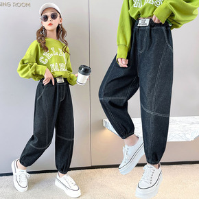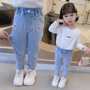 女童牛仔裤2021秋冬新款女宝宝洋气韩版小童百搭外...