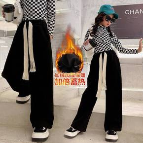 女童休闲裤新品加厚一体绒直筒裤小女孩春秋百搭雪尼尔...