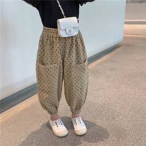 儿童裤子秋季外穿韩版女童灯芯绒休闲裤小童圆点萝卜裤...