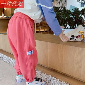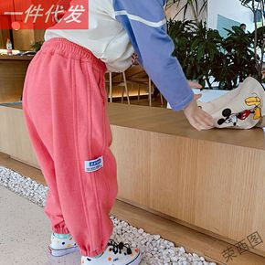 潮牌童装2022新款女童卫裤宽松春秋儿童运动休闲裤...