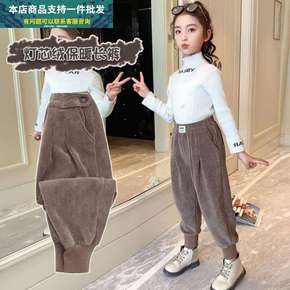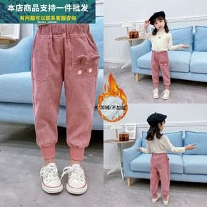 女童秋冬季灯芯绒阔腿裤儿童韩版新款宽松休闲裤宝宝加...